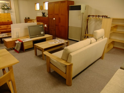 昨日新しいソファ、テレビボード、リビングテーブル、ダイニングセットの入荷に伴い、店のレイアウトをいじっておrました。