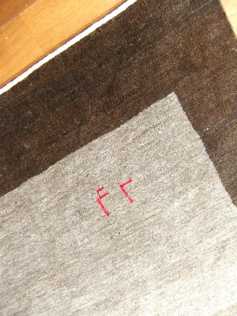 ギャッベの隅に折られた織子さんのマーキング。